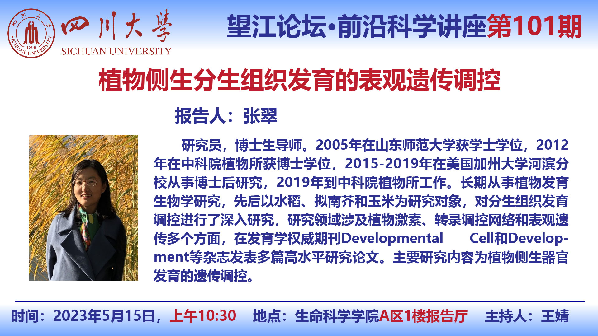 望江论坛-前沿科学讲座(第101期):张翠研究员5月15日学术报告